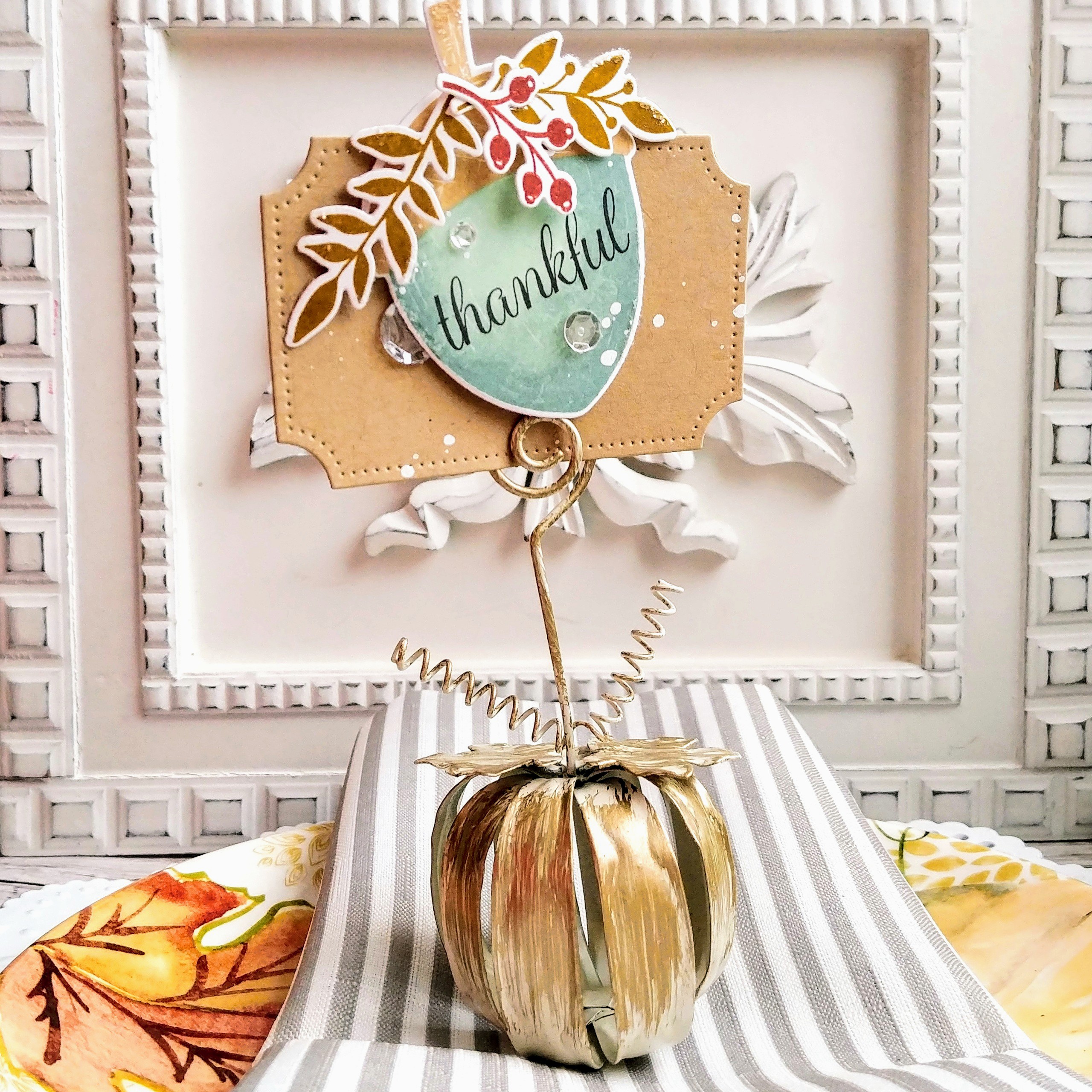 The Take Your Place kit was designed with your holiday table in mind. The elements included in the kit will take your table from Fall all the way through Christmas with beauty and style. Mix and match to make beautiful place settings, cards, tags, and more. With all of the different sentiments included in the kit, you will find just the right message for any fall and holiday project. This set makes every fall and winter holiday celebration special with your loved ones.