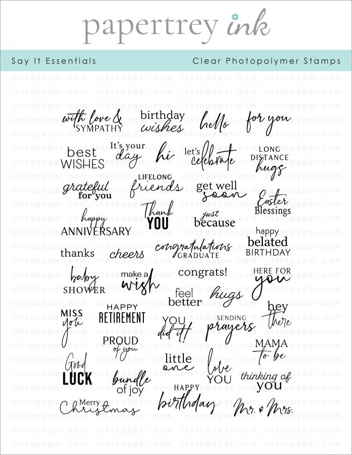 The Say It Essentials Sentiments Stamp Set - This set of sentiment stamps is all you need to get started. It includes thoughtful sentiments for special occasions, celebrations and more! We designed this set so you would have the perfect message for any situation. Say it on the outside of your card or the inside, this set is perfect for both!