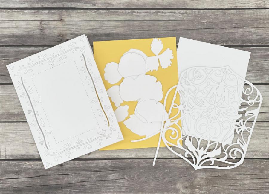 • 1 - White card base that has been cut out using the Border Bling: Blooming Hearts Die.