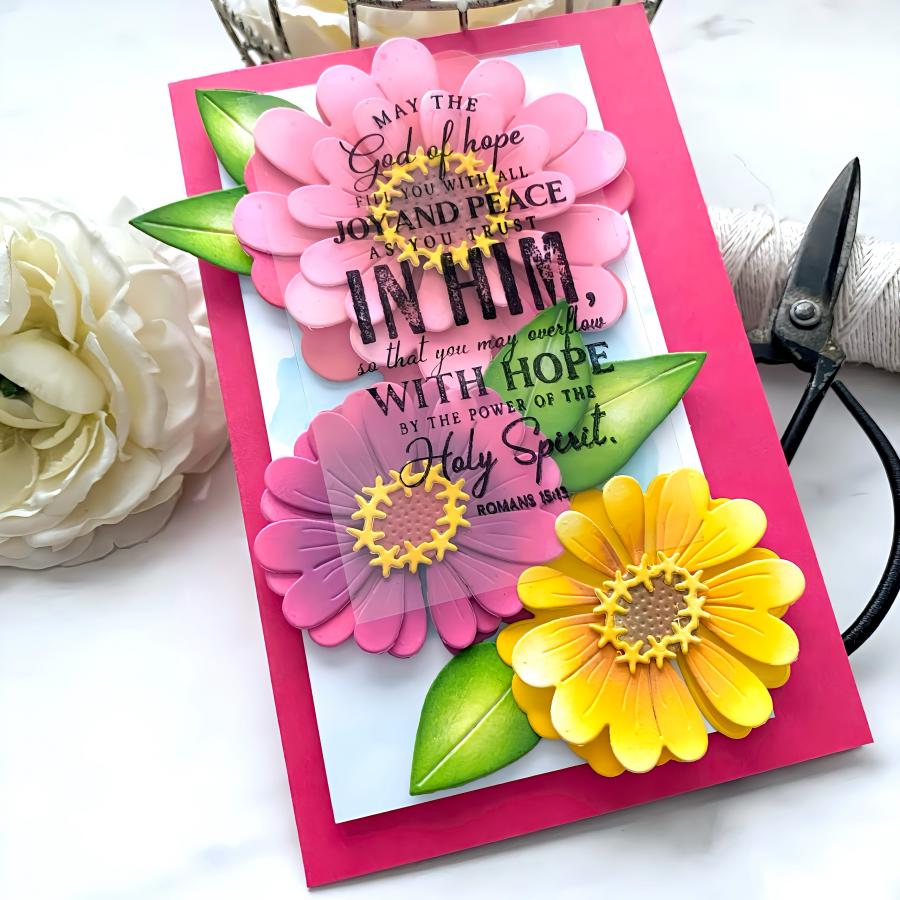 Flowers:3 1/4” x 3 1/8”3 1/8”2 1/4” x 2 1/8”Centers:1 1/8”1”1” x 7/8”3/4”Leaves:7/8” x 1 5/8”7/8” x 1 1/4”