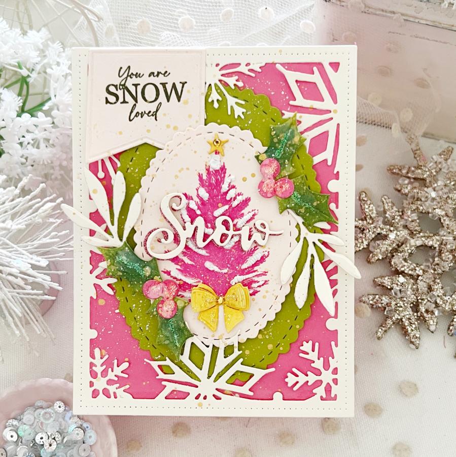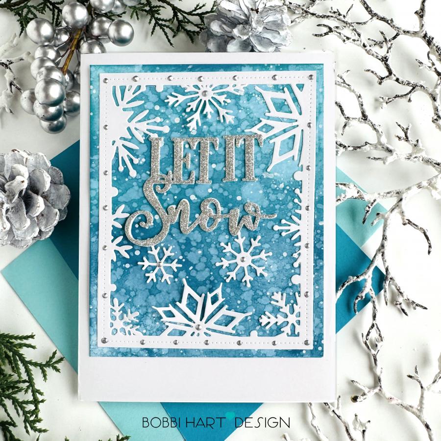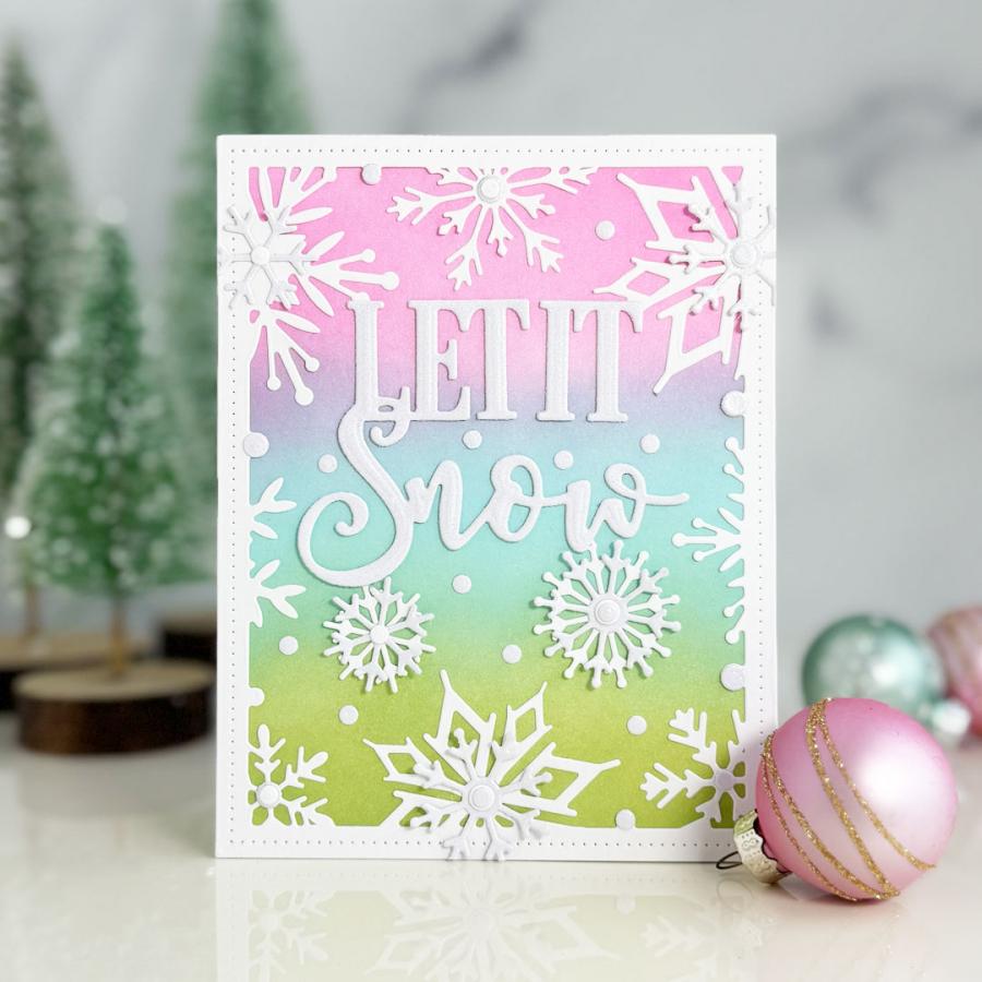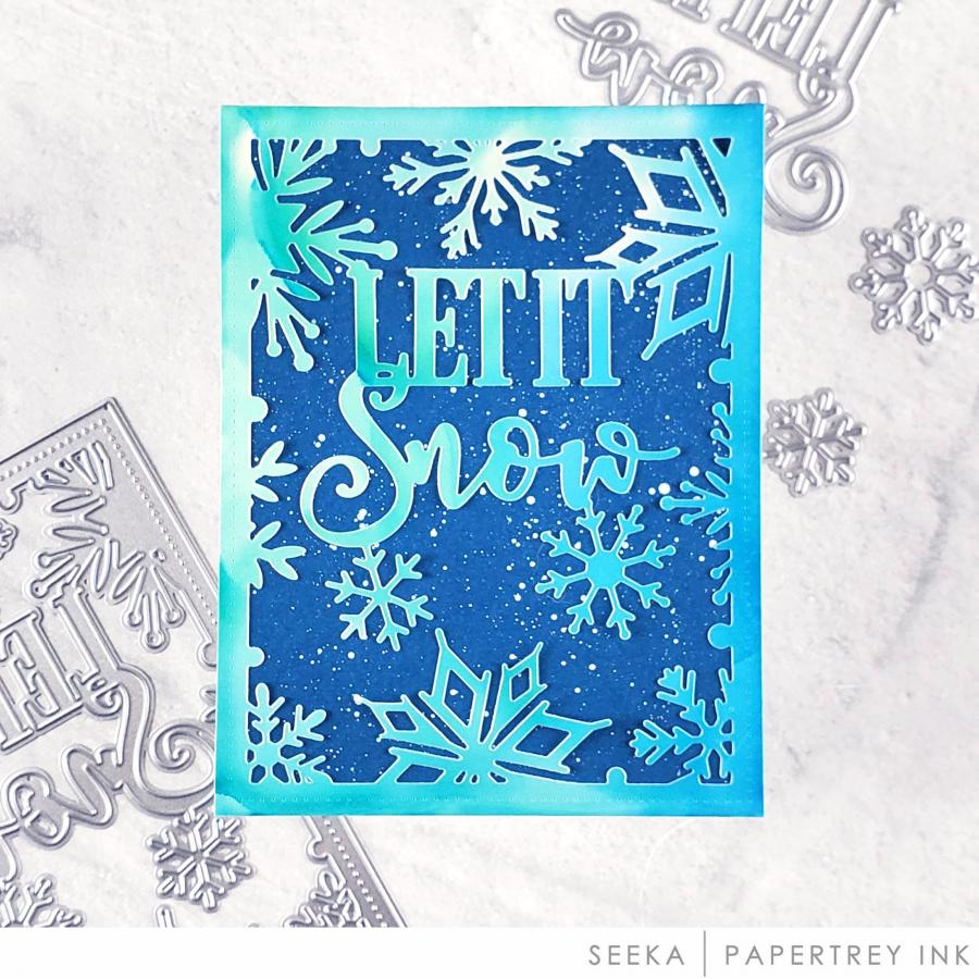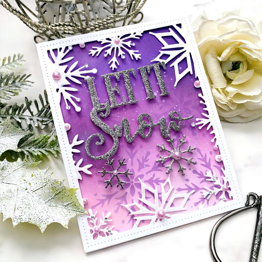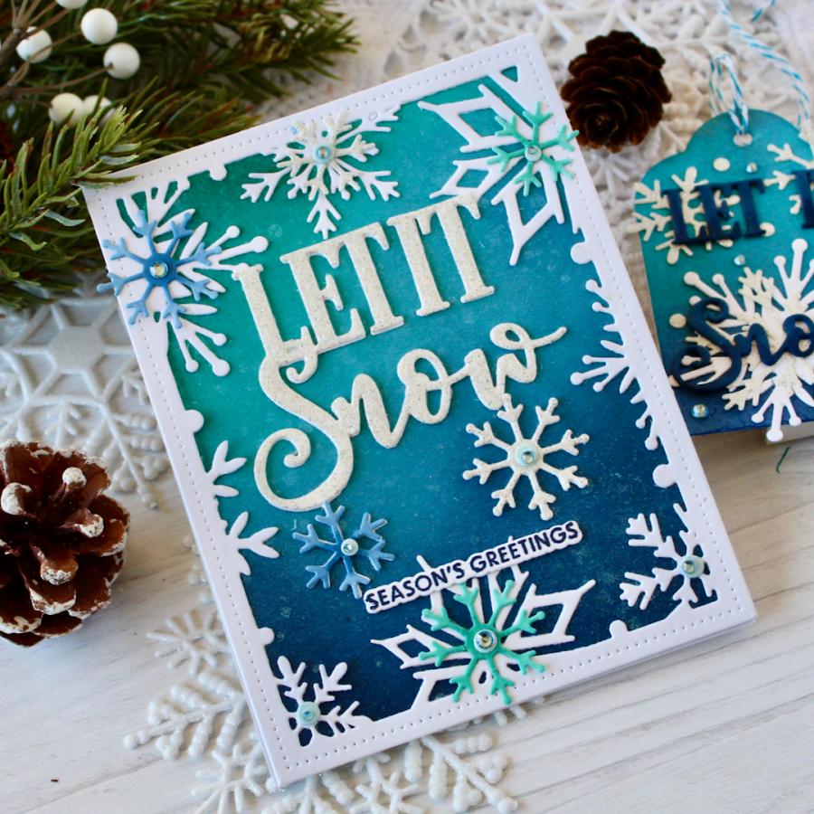 Cover Plate – 4 1/4” x 5 1/2”Let It Snow – 3” x 2 1/8”Snowflakes:1 1/8”7/8”Circles:1/4”3/16”Coordinates With:Holiday Tag: Let it Snow Die