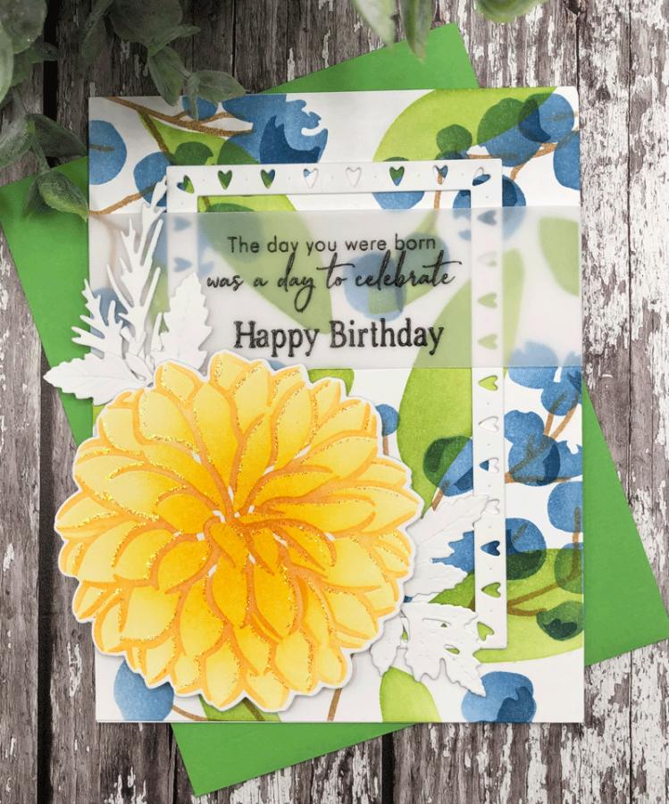 Dahlias:3 1/4”2 1/2”1 3/4”Coordinates With: Dahlias Stamp Set + Stencil and Posies & Sprigs Stamp Set