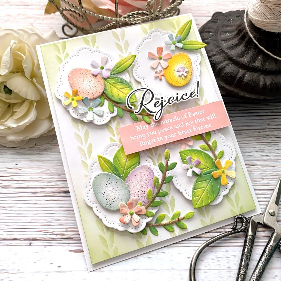 Nests:3 3/8”3 1/8”Egg – 3/4” x 1”Flowers:5/8”1/2”3/8”Leaves:3/4” x 1 5/8”5/8” x 1 1/8”3/8” x 7/8”Stem – 1/2” x 1 1/2”Spots – 1/2” x 5/8”