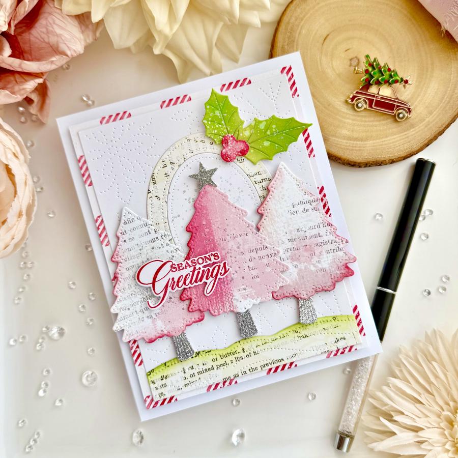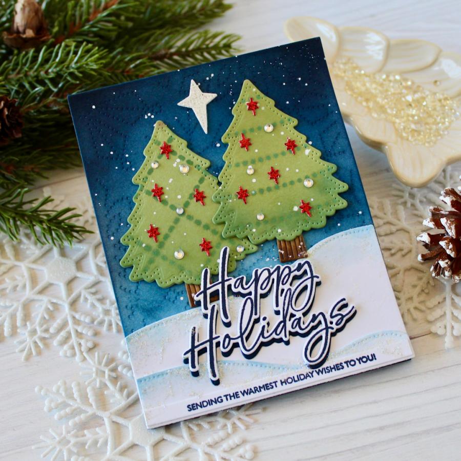 Christmas Trees:3 3/4” x 4 5/8”2 1/4” x 2 3/4”Garland – 3 3/8”Stars:3/4” x 1”11/16” x 5/8”1/4” x 3/8”Tree stand – 1/2” x 3/4”Ornaments:1/2” x 7/8”1/2”Ornament Top – 1/4”Circles – 1/8"