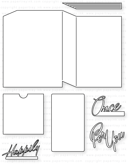 Dimensions - 5 1/2" x 8 1/2" (7 wired shapes) Complete Card - 5 1/2" x 8 1/2" Pocket - 3" x 2 7/8" Library Card - 2 3/8" x 4 1/8" Once - 2 3/8" x 1 3/8" Happily - 2 5/8" x 1 3/8" For You - 2 1/2" x 2 1/8" Coordinates with: Book Cover Details Mini Stamp Set |