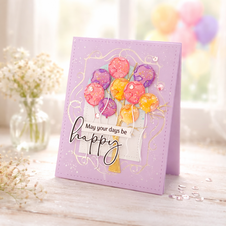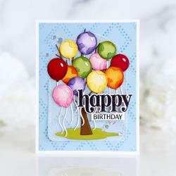 Balloons:7/8” x 1”3/4” x 7/8”Tree – 3” x 4 3/8”Happy birthday – 3” x 2”Ballon details:7/8”3/4”Strings:1/8” x 1 7/8”1/8” x 2”3/16” x 2 1/4”Shadow – 2 3/4” x 1/2”