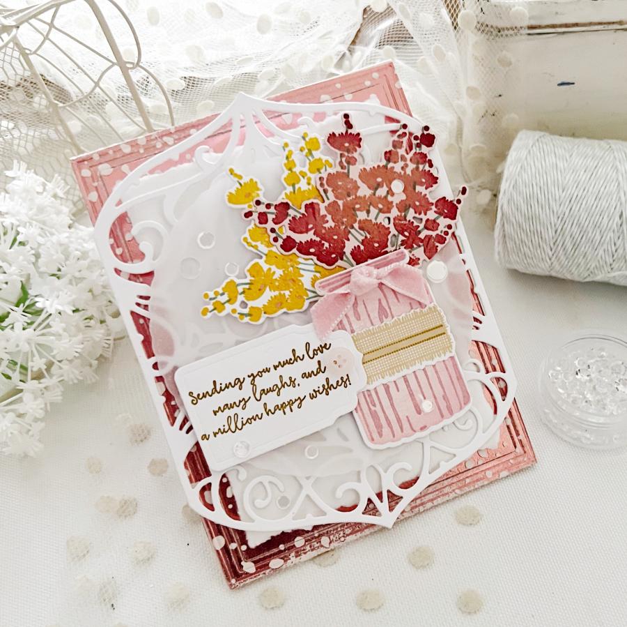 Vase – 1 1/2” x 2 1/4”Flowers – 2 3/4” x 2 3/8”Wrap – 1 1/2” x 3/4”