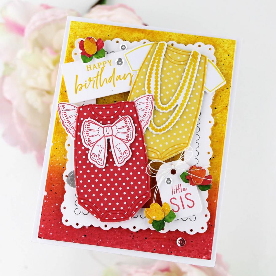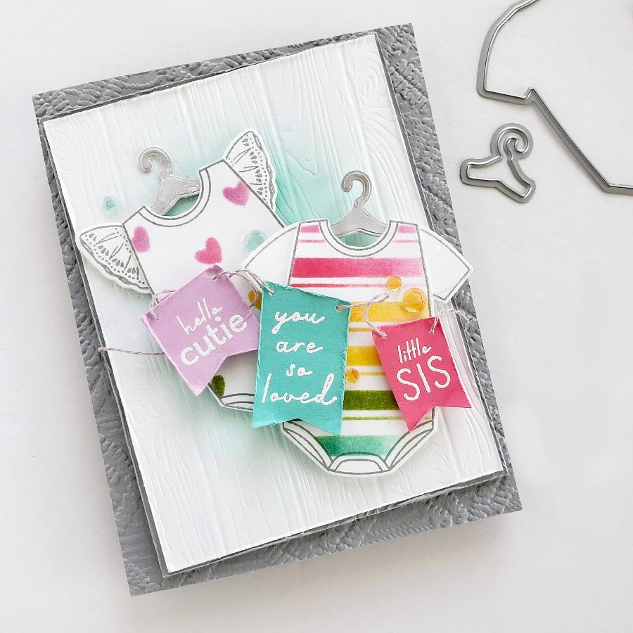 Adorable Outfits was created to celebrate the sweet babies in your life! Easily customize the onesies with a bow, tie, or necklace, and your choice of sleeves that fit your style! And don't even get us started on the adorable sentiments! You will love using this set with all of the details and customization options when creating that perfect card or gift!