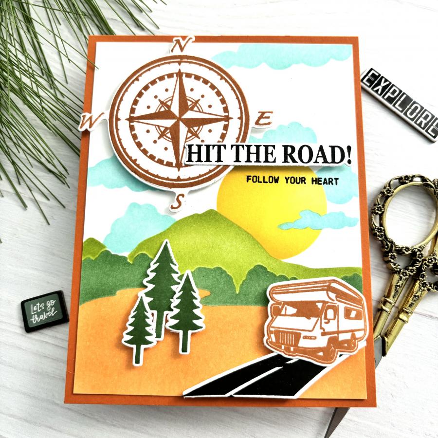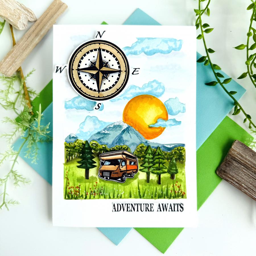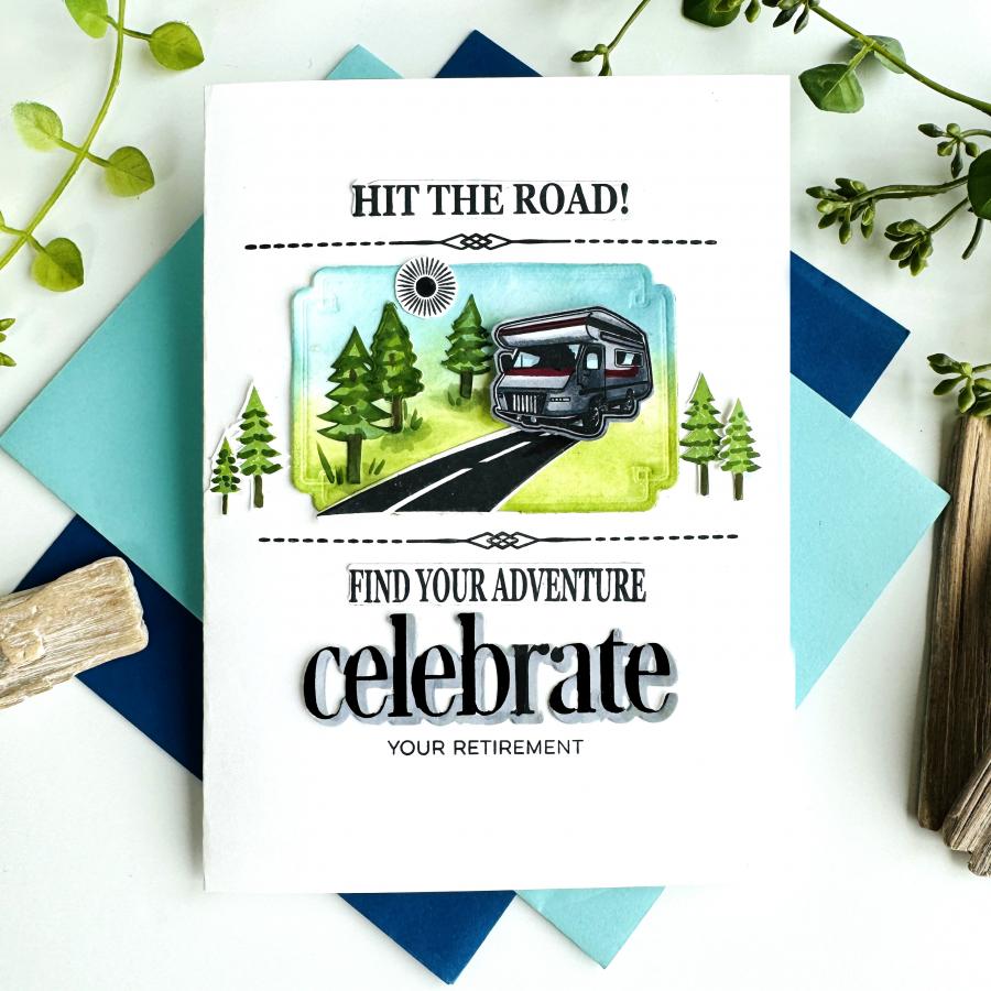 “Hit the Road,” and explore with the Adventure Away stamp set! Perfect for the creative and crafty person on the go. Inspire someone special with this summer travel-themed set, which features a rolling RV, a wandering road, picturesque trees, and so much more. Capture the spirit of the open road and adventure with sentiments like “Hit the Road!,” “Adventure Awaits,” and “Find your adventure.” Whether you're scrapbooking your latest trip or creating a travel-themed card, this versatile set inspires you to craft your journey. Let Adventure Away ignite your creativity and bring the excitement of travel to your next project.