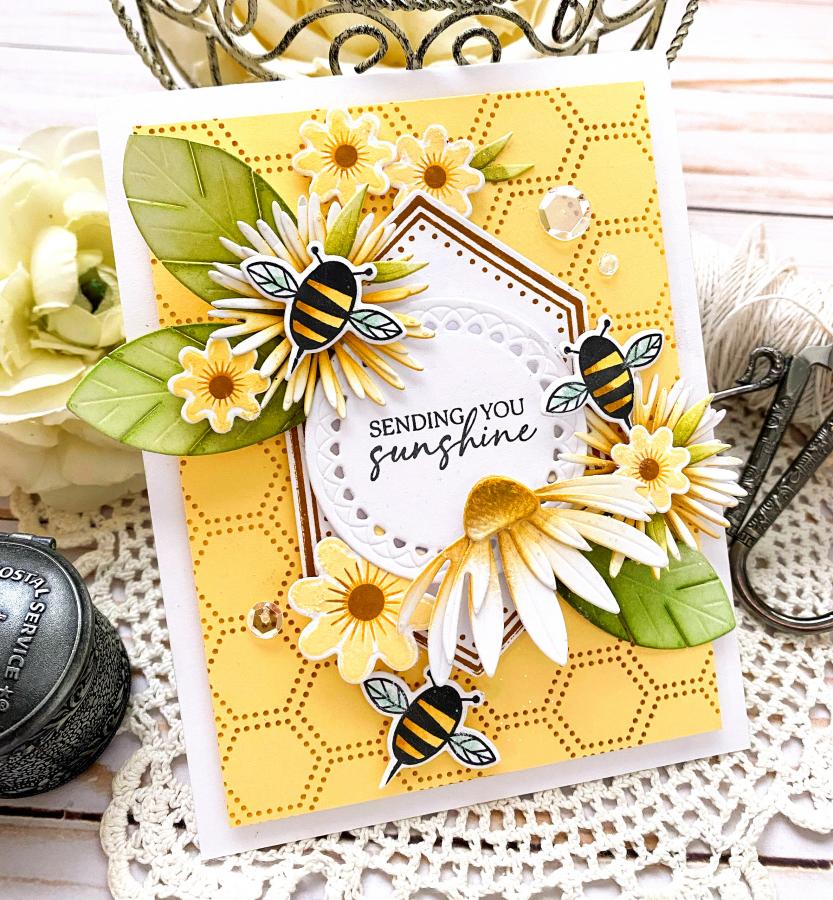 This set comes on a single 3”x 4“ acetate sheet. The Berry Best Mom sentiment measures approximately 1” x 1.” The Strawberry stamp measures about 1/2” x 1,” and the Blueberry stamp measures around 1/2” x 1/2.” The Bee stamp and the Bee-utiful Mom sentiment are approximately 1 1/4” x 1.”