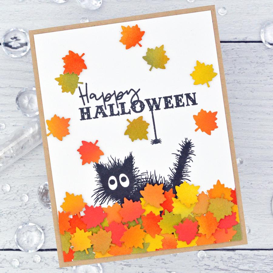 This set comes on a single 4”x 6“ acetate sheet. The Frazzled Cat measures approximately 2 1/2” x 3,” the Moon is around 1 1/2” x 2 1/2.” The Spider measures 1/4” x 3/4,” and the Spiderweb is approximately 1” x 1.” The Three Stars is 1/2” x 1/2,” and the Single Stars measures around 1/4” x 1/4.” The Paw Readings sentiment is 3” x 1/2.” The Happy Halloween sentiment measures approximately 2 1/2” x 3/4,” and the Boo! Sentiment is about 1/2” x 1/4.”
