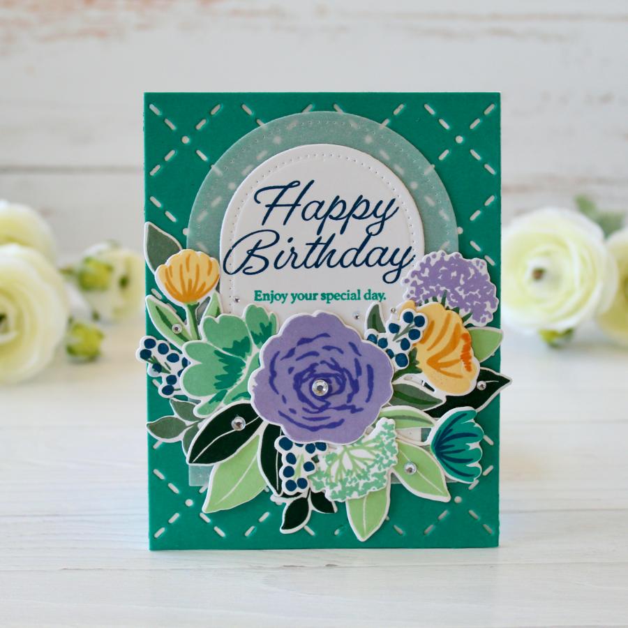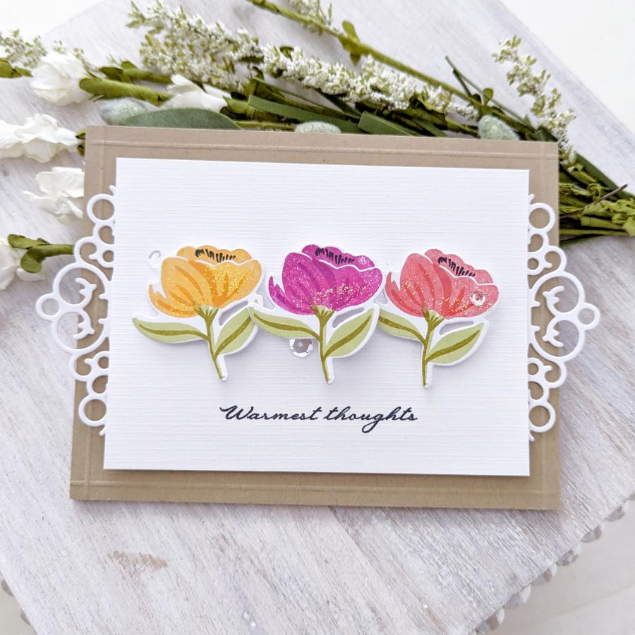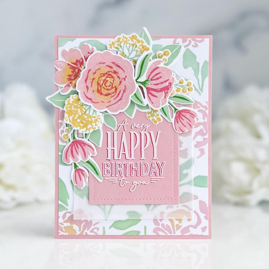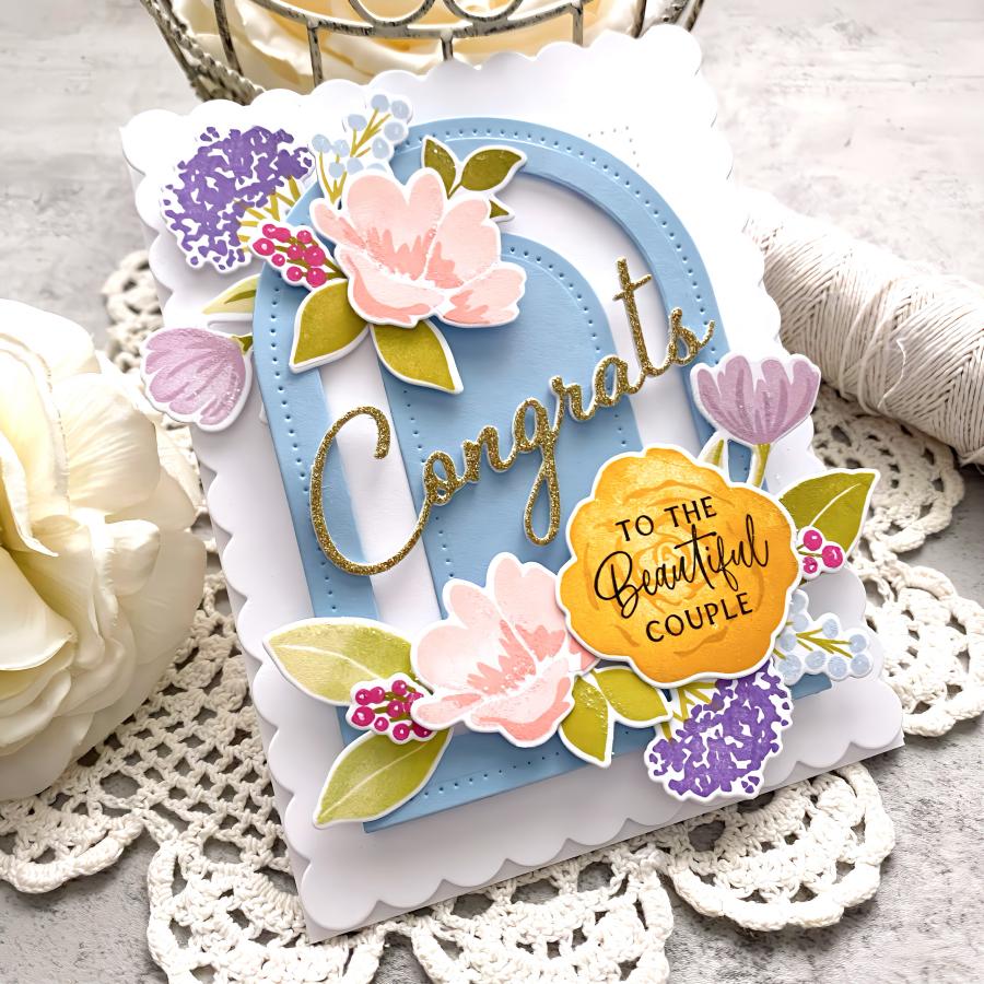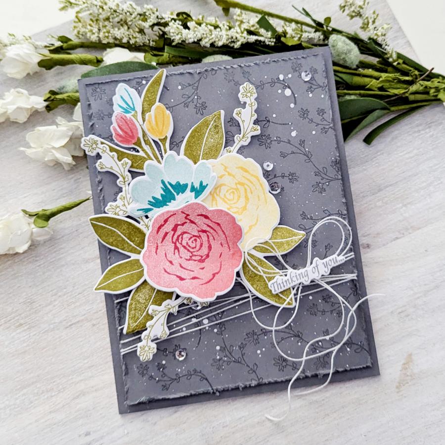 Elevate your crafting game with Breathtaking Blooms! This exquisite set was inspired by an actual watercolored piece of art giving it an artistic signature that cannot be duplicated. With the innovative multi-step stamping technique, you can effortlessly craft your own mesmerizing "watercolor" art using the unique elements included in this set. From a striking rose and peony to delicate Queen Anne's lace and tulips in different sizes, the possibilities are endless. Personalize your watercolor bouquets further by adding in leaves and berry branches of varying sizes. Get ready to bring your artistic vision to life with Breathtaking Blooms!