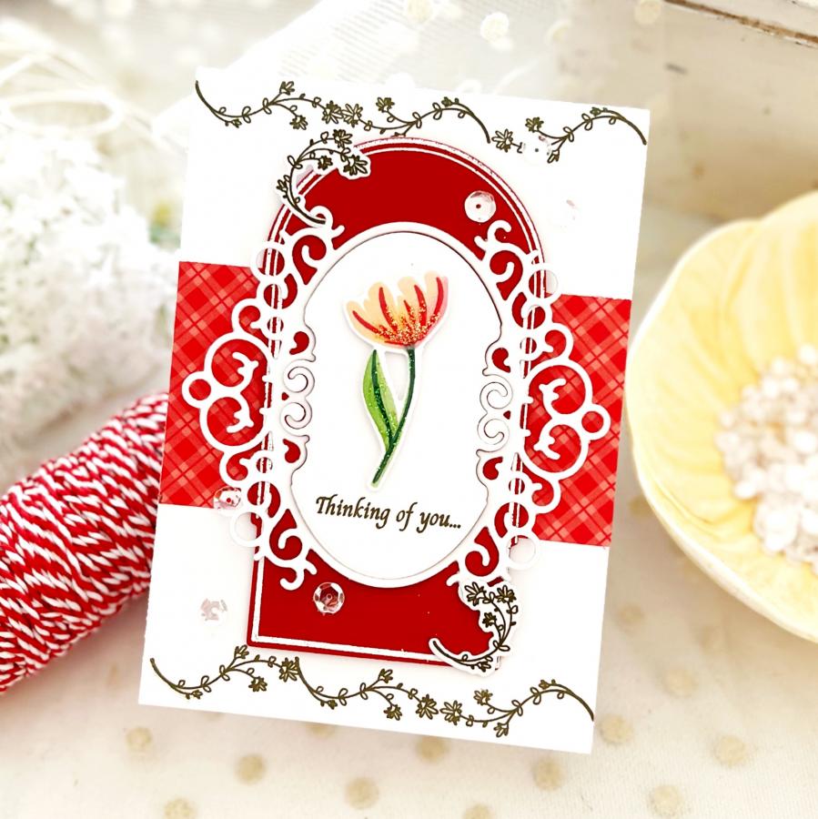 This set comes on two 4" x 6" acetate sheets. The finished rose measures 1 2/3” x 1 1/2”. The finished peony is approximately 1 1/2” x 1/2”. The finished open tulips are 1 7/8” 7/8” and 1 1/2” x 7/8”. The finished closed tulips range in size from 1” x 3/4” to 2 1/2” x 3/4”. The Queen Anne’s lace flowers are 1 2/3” x 1 1/3” and 1 1/3” x 1 1/8”. The single flower measures 1 1/2” x 1”. The small leaves range in size from 5/8” x 1/2” to 3/4” x 3/4”. The two big leaves measure a little less than 1 1/4” x 1 1/4”. The single leaf is 1 1/4” x 3/4”. The berry clusters range approximately in size from 1/2” x 1/4” to 1” x 1/2”.