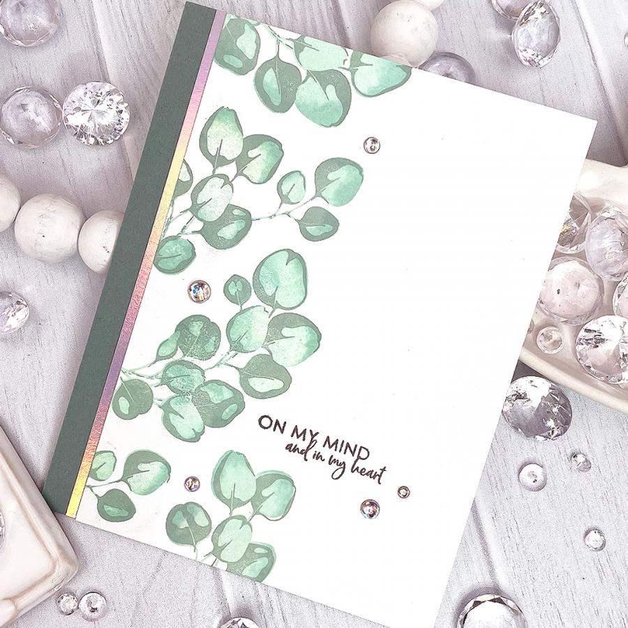 The Eucalyptus Elegance Stamp Set was inspired by a soft, watercolor feel making it perfect to experiment with blending colors and using wet medium. The arced shape of each branch makes it easy to create a beautiful wreath of greenery with sprigs of Babys Breath scattered throughout. Coupling this set with the Eucalyptus Elegance Die Collection makes it easy to arrange each sprig into a wreath or to peak out behind your favorite image or sentiment. These soothing eucalyptus branches are timeless, versatile and simply beautiful.
