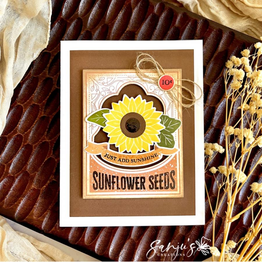 This set comes on two 4" x 6" acetate sheets. The seed packet frame is just under 2 3/4" wide and just under 3 5/8” tall. The assembled banner is just under 2 3/4" wide and just over 5/8” tall. The assembled sunflower is just under 1 7/8” wide and just over 1 3/4" tall. The assembled pumpkin is just over 1 5/8” wide and just under 1 3/8” tall. The “10¢” is just over 1/4" wide and just over 1/8” tall. The assembled pumpkin slice is just under 1” wide and just over 5/8” tall. The assembled apple is just under 1 5/8” wide and just over 1 3/4" tall. The distressed small circle is just over 3/8” wide and tall. The remaining sentiments/wording vary in size from the largest being “Pumpkin Seeds” which is just over 2 3/8” wide and just over 1/2” tall and the smallest being “Organic” being just over 1” wide and just under 1/4" tall. The leaves/stems vary in size from the largest being just over 1 1/4" wide and just under 1 1/4" tall and the smallest being just under 1” wide and just over 1/2" tall.