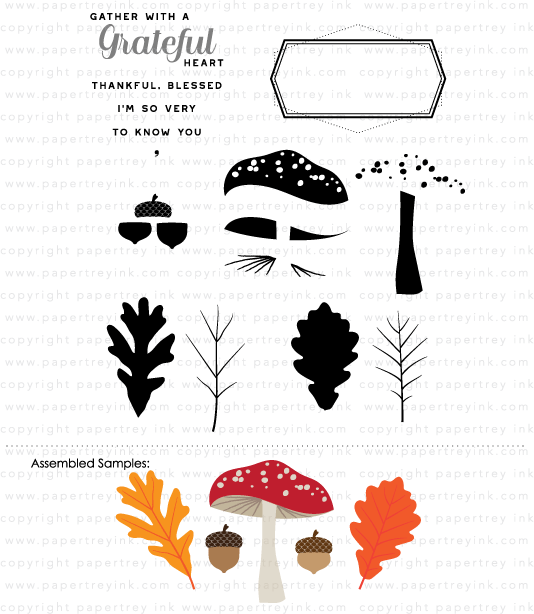 *This stamp set does not include a CD case. MEASUREMENT REFERENCE: This stamp set comes on one 4 x 6 acetate sheet. The “Grateful” sentiment measures 1 5/8” wide by just over 1/2” tall. The assembled white oak leaf measures just under 1” wide by just under 1 7/8” tall. The assembled mushroom measures just under 1 3/4” wide by 2” tall. The frame measures 2 2/5” wide by 1 1/2” tall. The assembled shorter acorn measures just 1/2” wide by 5/8” tall. |