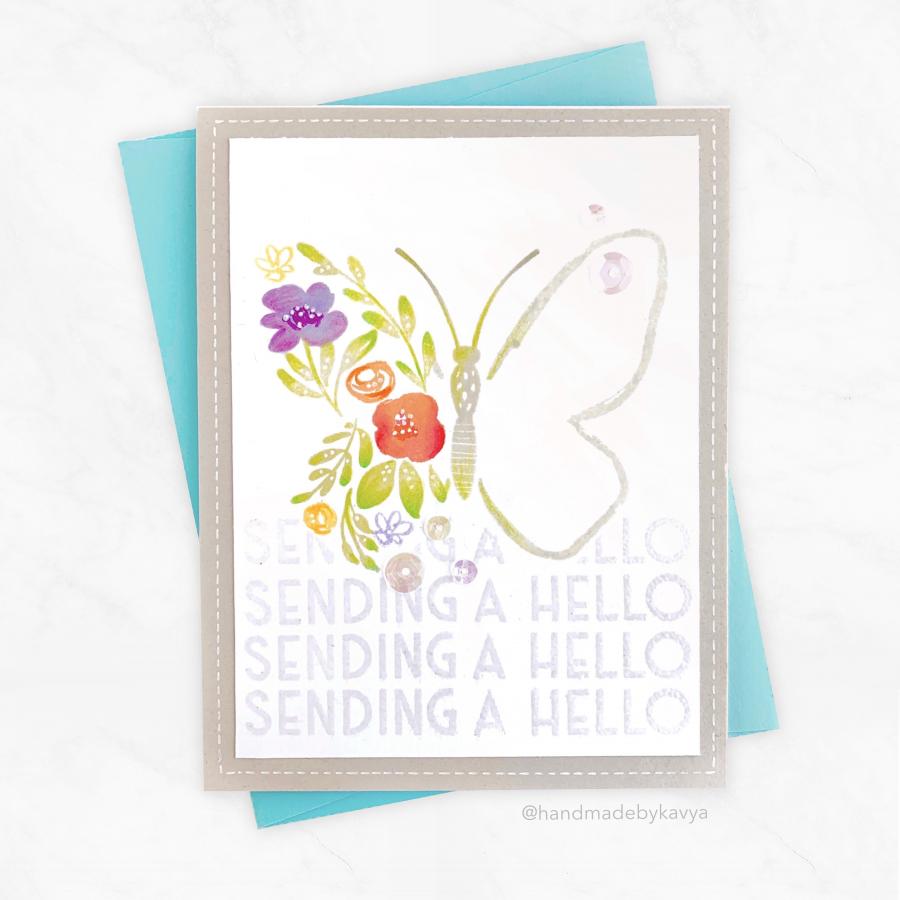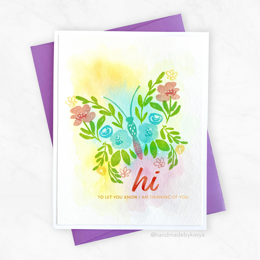Let your design take flight with this watercolor style, modern take on the butterfly. Create this butterfly with simple layering steps, just choose your colors and begin stamping! Add one of the coordinating sentiments from this set for a complete card!