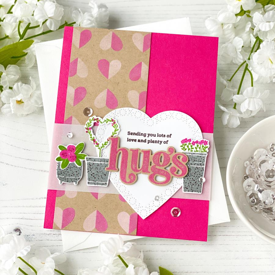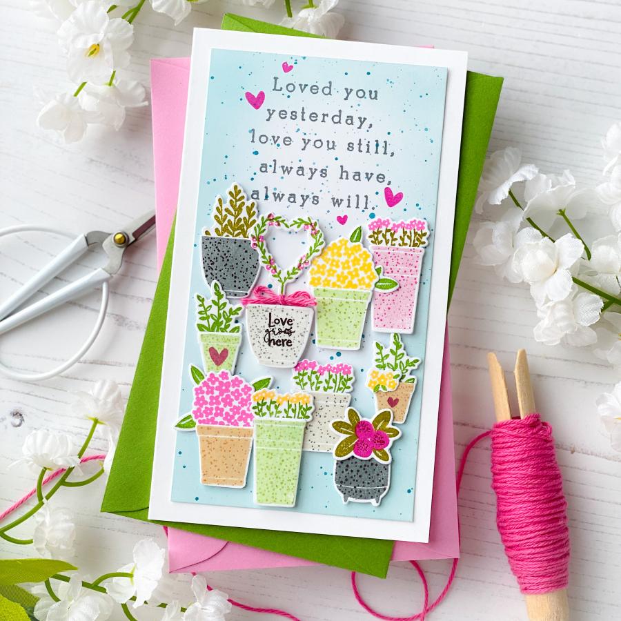 Love can bloom anywhere and it is the foundation for so many things we treasure in life. Love is family, love is friendship, and love is kindness. Love is all around us and it is up to us to help it flourish and grow. This set makes it effortless to share love with those who mean so much to us. The beautiful, uplifting sentiments and sweet love-themed stamps will fill your heart with warmth and joy each time you use it!