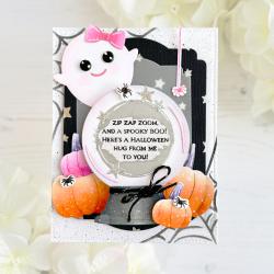 This set comes on a single 4" x 6" acetate sheet. The sentiments vary in size from the largest being “Zip Zap Zoom, And A Spooky Boo! Here’s A Halloween Hug From Me To You” at just over 1 5/8” wide and just under 1” tall and the smallest being “Alakazam, Alakazee, You’re As Sweet As You Can Be” at just under 1 3/8” wide and just over 3/4" tall.