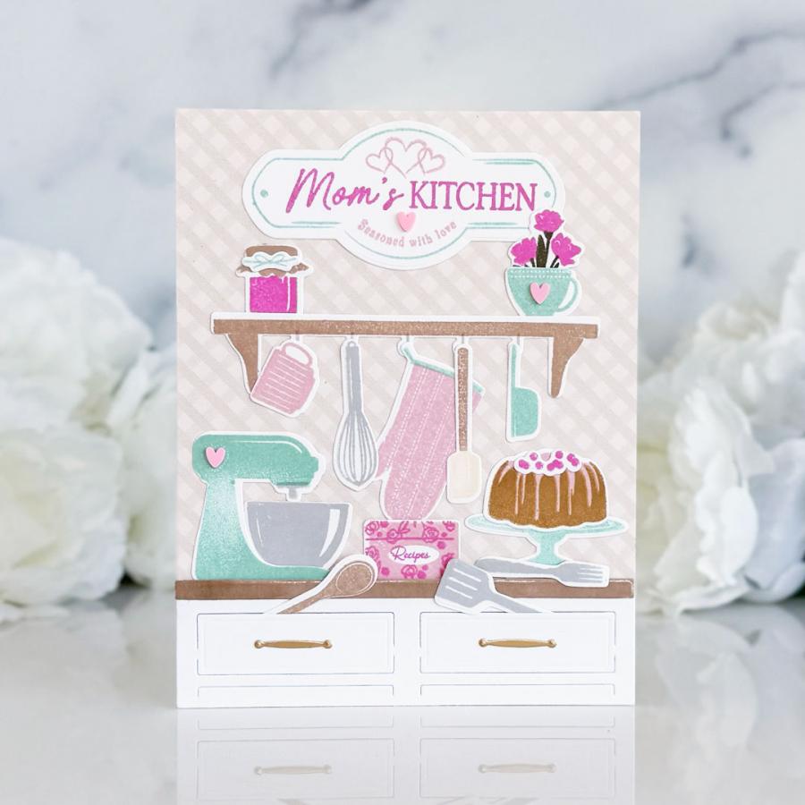Step into the heart of the home with the Mom’s Kitchen stamp set! This set is filled with the most charming kitchen elements and a customizable sign, that lets you create the perfect kitchen scene every time. Celebrate the love and warmth that only a mother’s cooking can bring—because every homemade meal is always seasoned with love. Mom’s Kitchen is a true tribute to the laughter, comfort, and delicious memories made around Mom’s table. After all, home is wherever Mom is!
