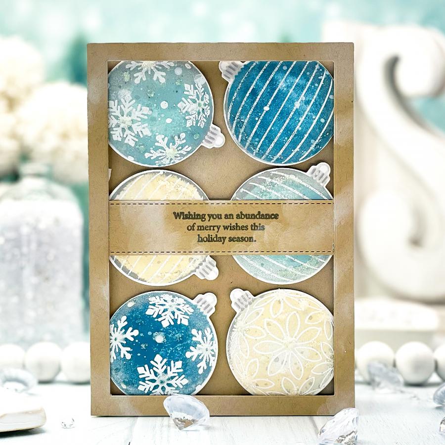 This set comes on a single 4" x 6" acetate sheet. The assembled ornament is just over 1 3/4" wide and just under 2 1/8” tall. The assembled bell is just under 5/8” wide and just over 5/8” tall. The bow is 3/4" wide and just over 3/4" tall. The pine branch is just over 1 5/8” wide and just under 1 1/2" tall. The larger snowflake is just under 7/8” wide and just under 3/4" tall. The smaller snowflake is just over 5/8” wide and tall.