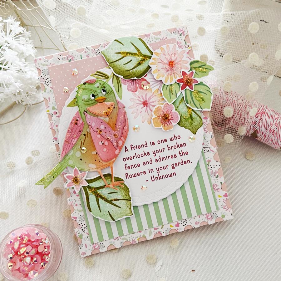 This set comes on a single 4”x 6“ acetate sheet. The Large Single Leaf stamp measures approximately 1” x 2.” The Three Leaf Sprig is 1 1/2” x 2,” and the Leafy Sprig stamp is around 1 1/4” x 2 1/3.” The Largest Flower measures approximately 1” x 1.” The Five Petal Flower measures around 3/4” x 3/4,” and the Six Petal Flower is 1/2” x 1/2.”