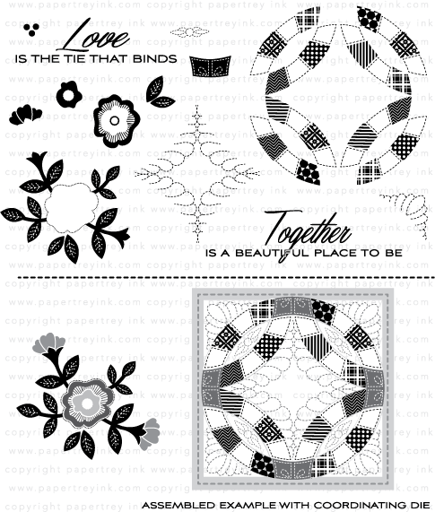 *This stamp set does not include a CD case. MEASUREMENT REFERENCE: This set comes on a single 4x6 acetate sheet. The main circular quilt image measures just over 2 3/4” wide and 2 3/4” tall. The assembled quilt block, including the die, measures 3 1/8” x 3 1/8”. The assembled flower bouquet measures just under 2 1/4” wide and 2” tall. The “Together is a beautiful place to be” sentiment measures 3” wide and 7/8” tall.