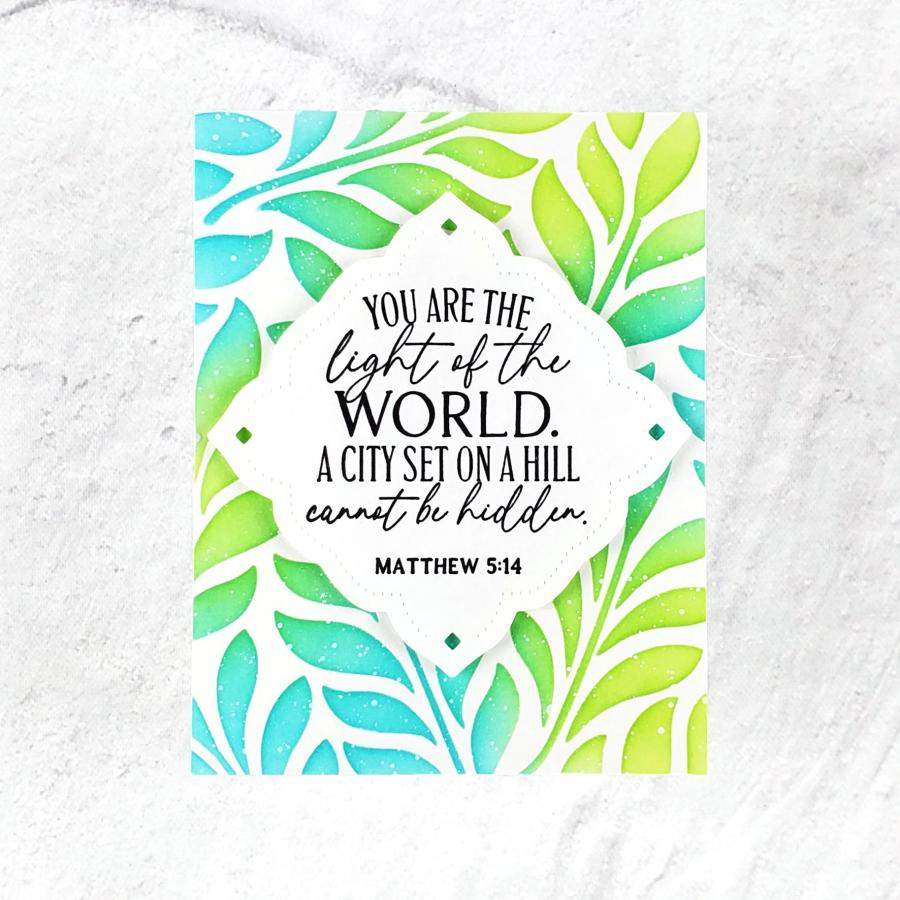 This set comes on a single 3" x 4" acetate sheet. The scripture is just over 2 1/4" wide and just under 2 3/8” tall.