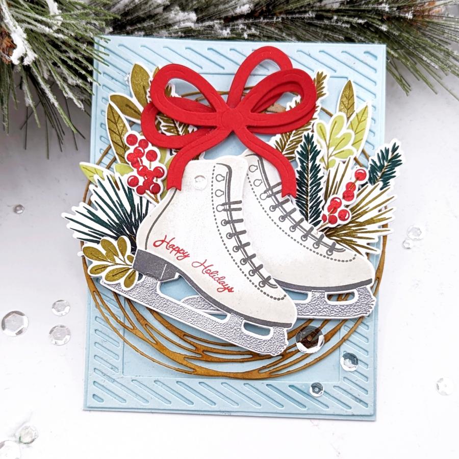 Skate Into the Holidays is a wonderful holiday set featuring ice skates and florals. This set is perfect for capturing the beautiful memories of ice skating with your loved ones during the holiday season. The classic ice skate design serves as a holder for a lovely floral arrangement, and with the addition of a bow and sentiment, your card will be complete. This set is a must-have for any crafter looking to add a classic touch to their holiday projects. Get yours today and start creating beautiful memories!