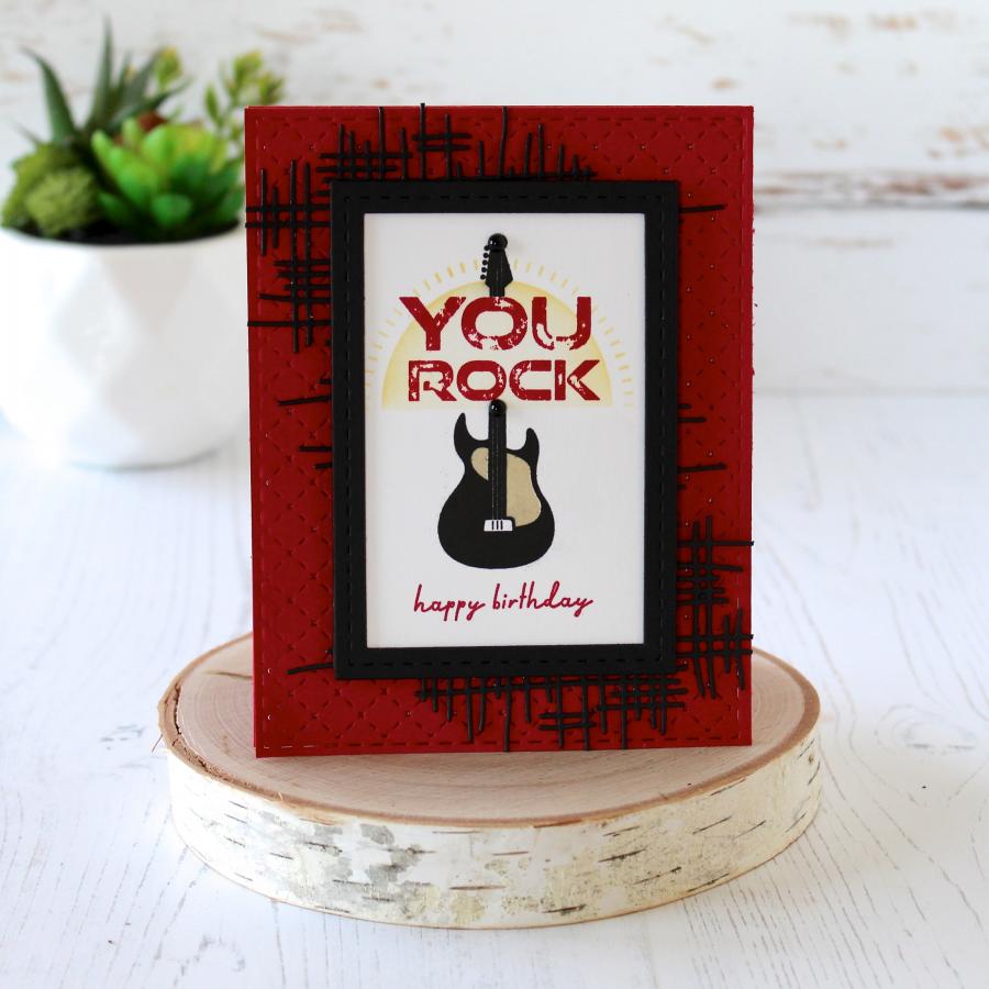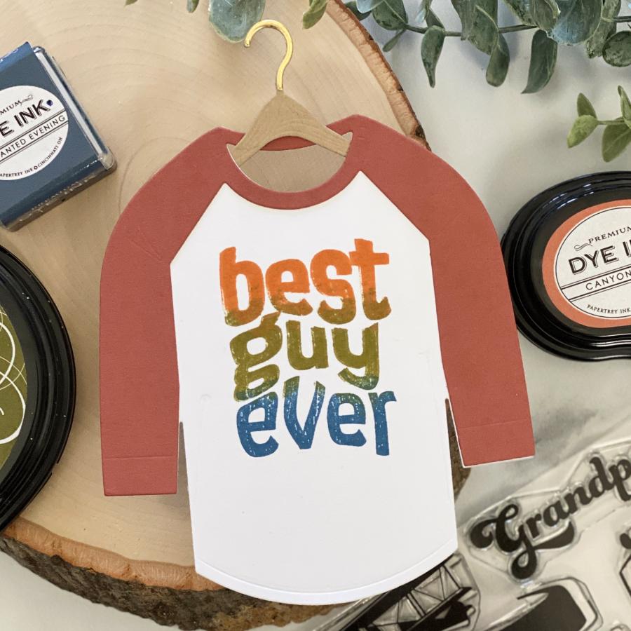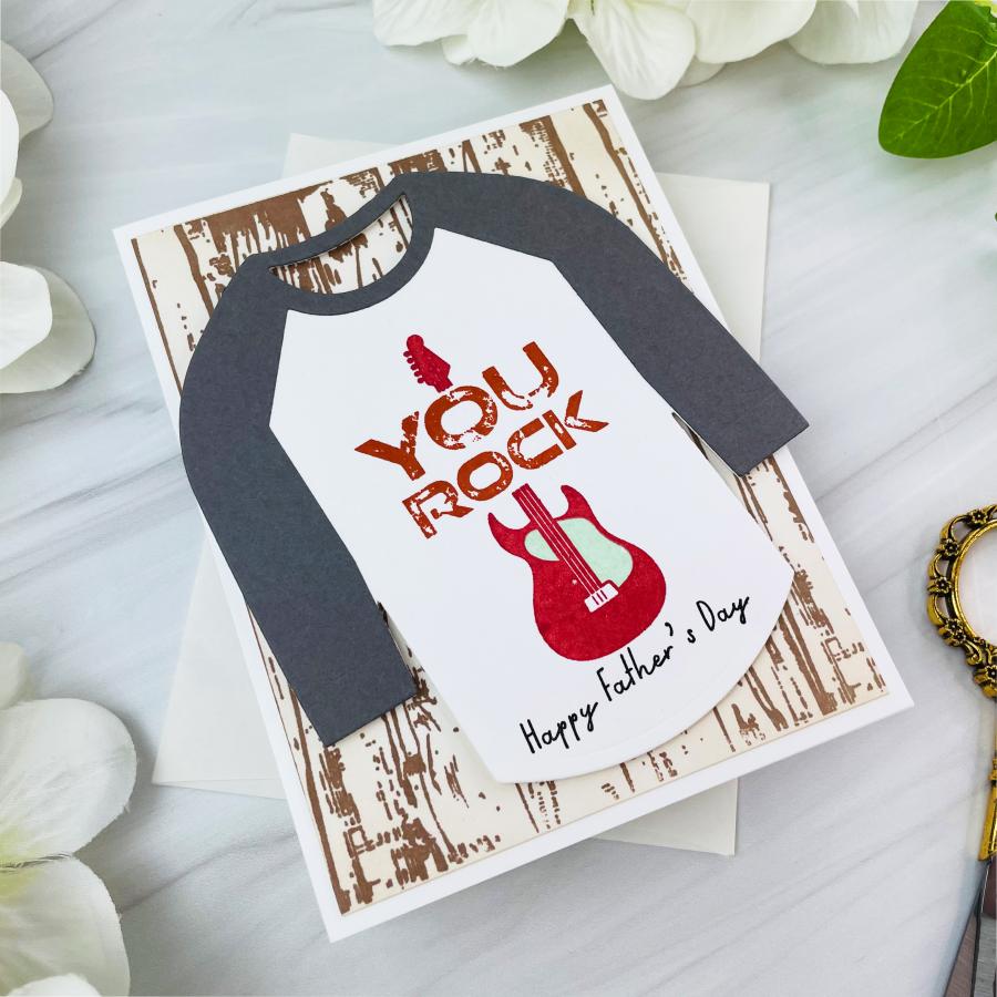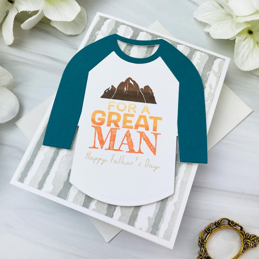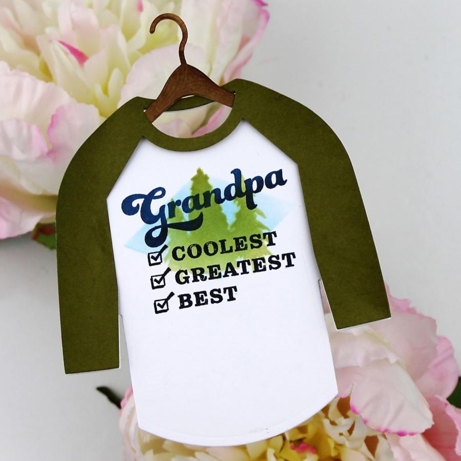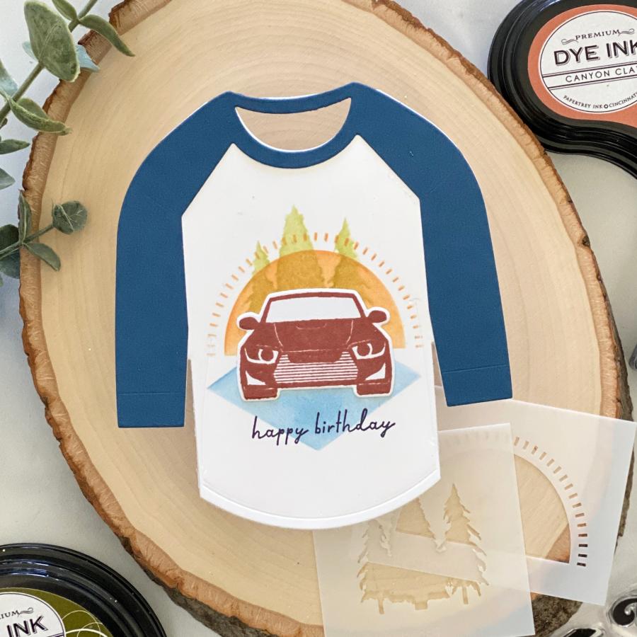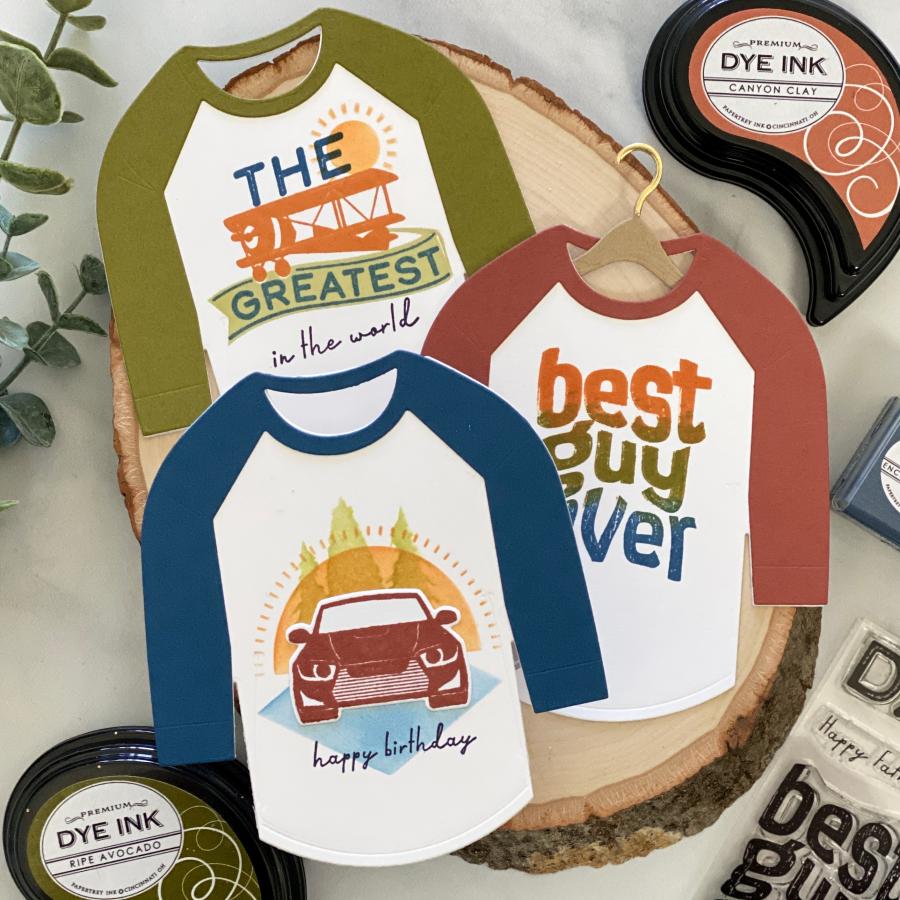a husband, a son, a grandfather or a dear friend who we would love to create a card for that really resonates with them. Well, look no further, this set has it all and its all about your guy! It has a cool style inspired by your guys favorite classic t-shirt graphics that they wear all the time! To make this set even better, you can pair this with the Baseball T Die and put these designs right on front to create their very own special custom tee made by you! Also, this set has a coordinating stencil set for even more options to create your special custom made t-shirt! You will have so much fun creating these for all the guys in your life you will want to create more (maybe for crafty friends) with other images in your stash!