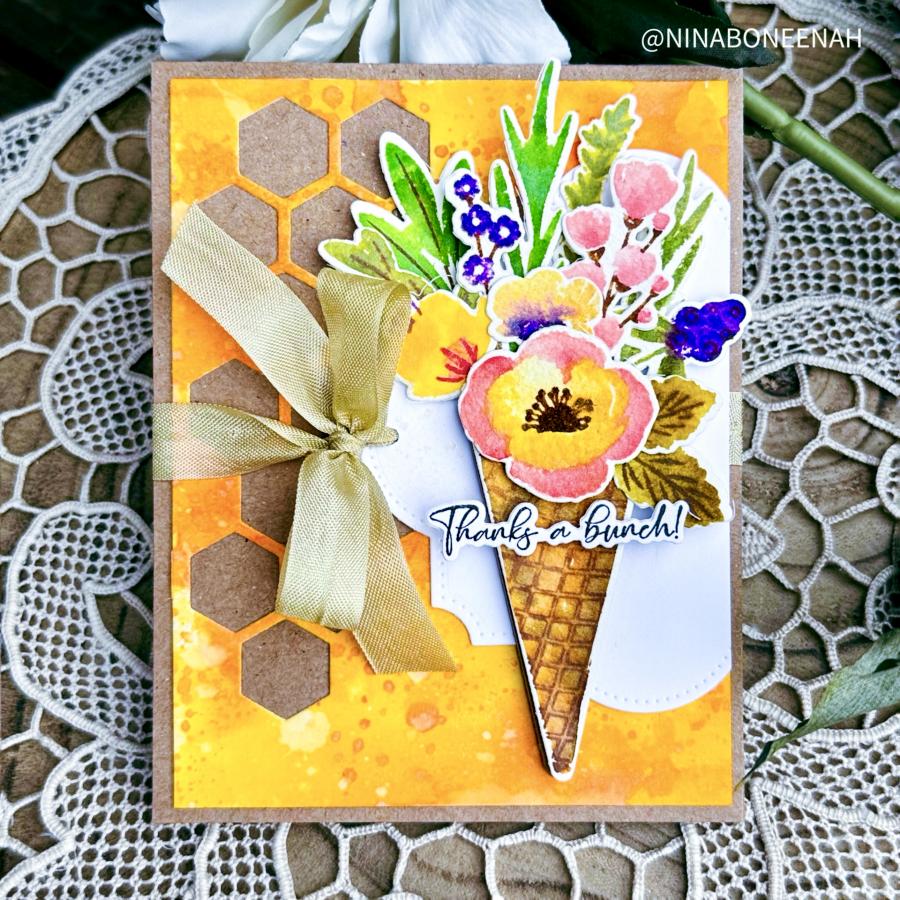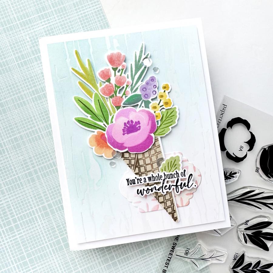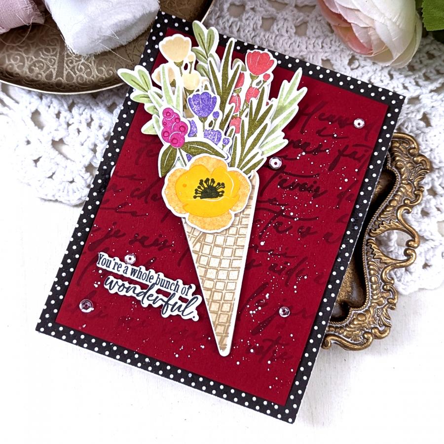 The Sweetest Bunch is a delightful twist on traditional florals by pairing the charm of a blooming bouquet with the whimsy of an ice cream waffle cone! This playful stamp set lets you fill a cone with a bunch of beautiful blooms, creating the perfect blend of sweet and stunning. This set will add a scoop of joy to every card, because when flowers meet your favorite treat, it’s truly the sweetest bunch around!