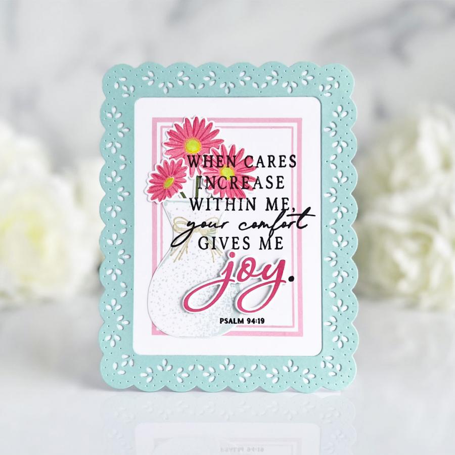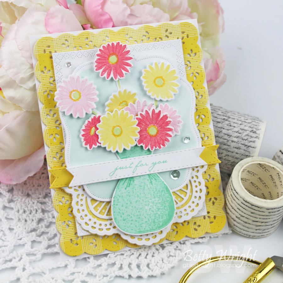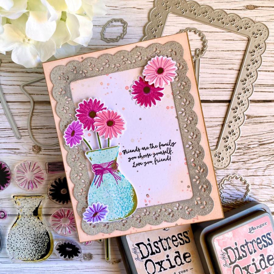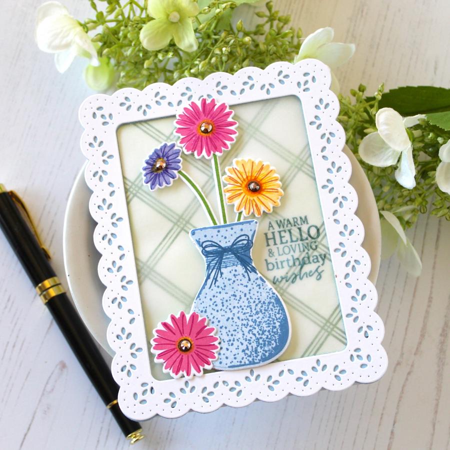 This is one of those collections you definitely want to start! This is the sixteenth addition to your vase collection. Often you find yourself reaching for a vase when someone gives you flowers, now it is no different when you are creating cards and projects! With our Vase Collection you have more options when you need a vase for one of the many floral bouquets you have in your stamp collection! This set includes a beautiful concrete textured vase and sweet daisies, which are an absolute spring favorite!