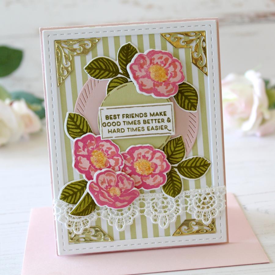 Create gorgeous, rich flowers and leaves with this Vintage Blooms stamp set. The multi-step design allows you to bring each piece to life by adding deep shadows and highlights. While the set may seem intimidating at first sight, weve created a step-by-step guide to walk you through the layering process; as well as what tones may provide the most beautiful results for your blooms. Once each flower and leaf is created, the Vintage Bloom Die Collection makes it easy to cut and place each piece into the perfect arrangement.