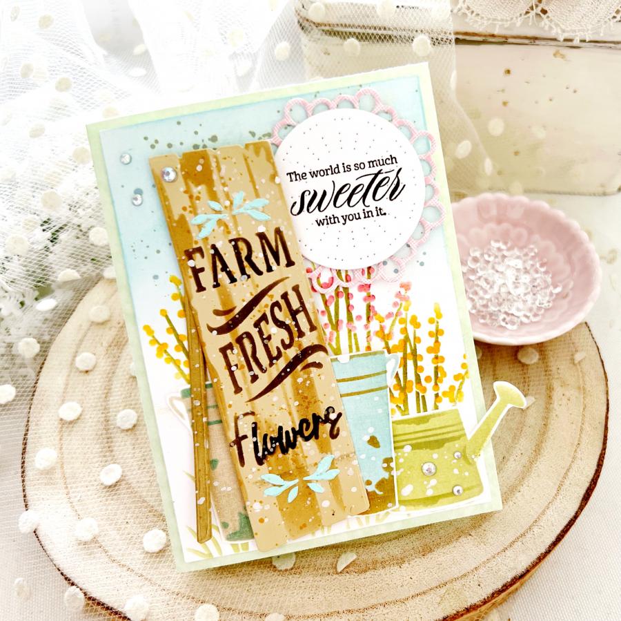 This stencil collection is meant to pair perfectly with the Wooden Easel Die. Create your own classic wooden market sign highlighting anything from garden fresh flowers to farm fresh produce! Surround it with the vintage watering can and tall galvanized bucket filled with florals to make the perfect scene!