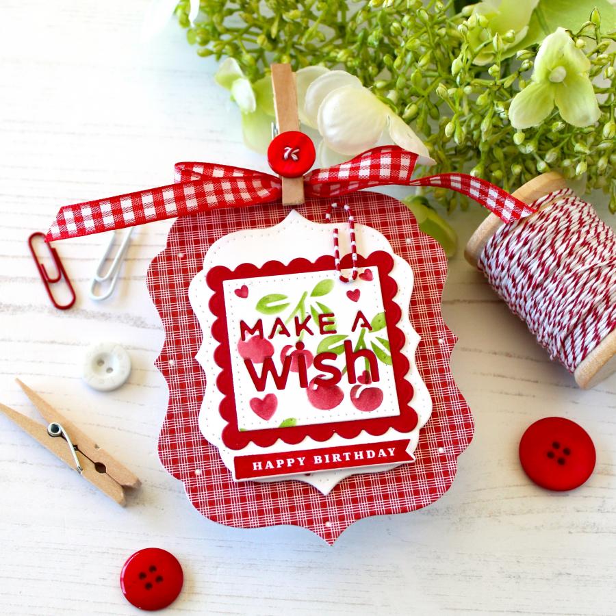 This set of cherry stencils is simply delightful! They are perfect for any occasion where you need to add something a little extra sweet to your cards and projects! So, go ahead and top off your cards with all of this deliciousness!